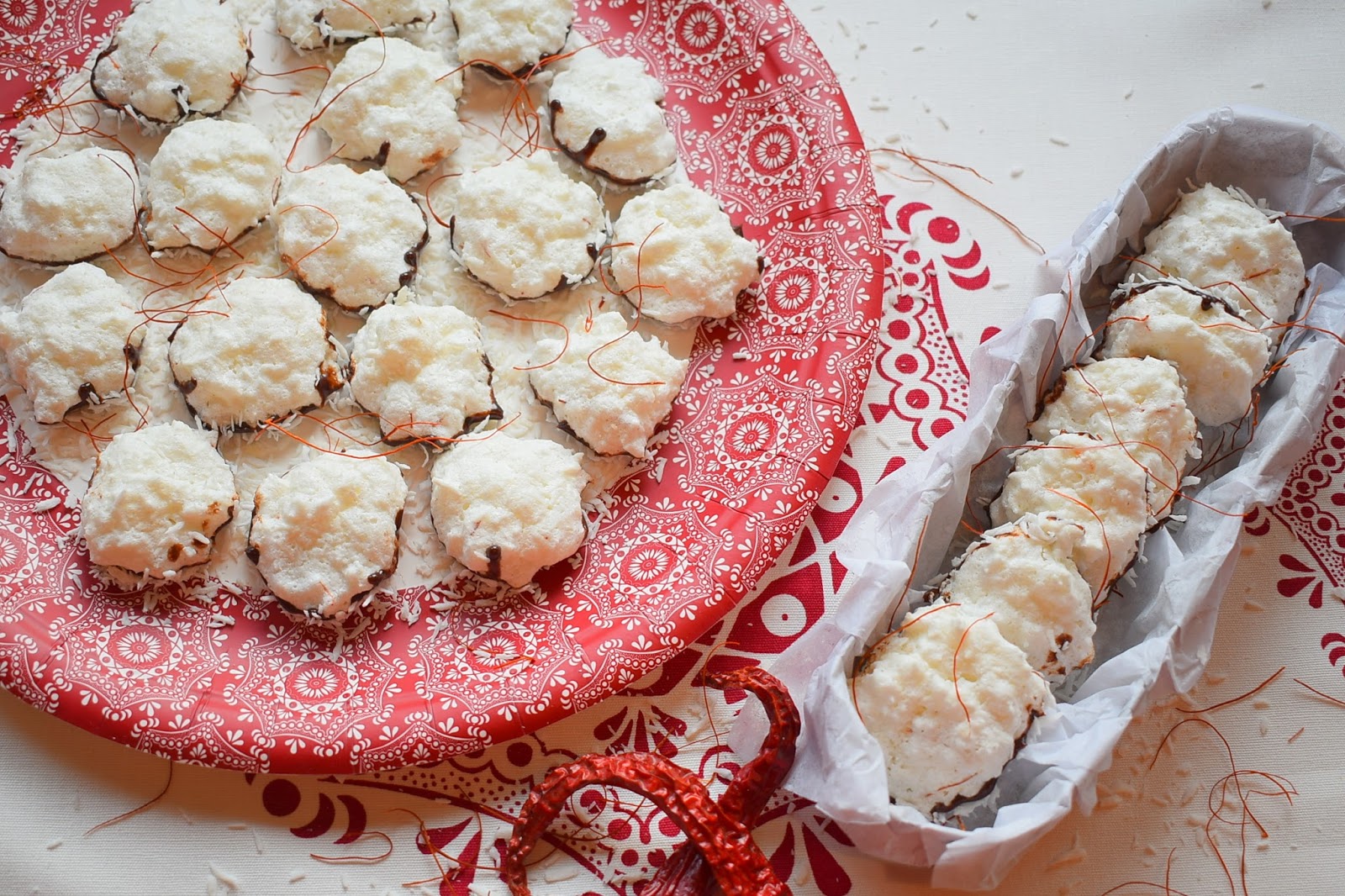 кокосовите стърготини и след това се добавят към белтъците като се разбъркват с